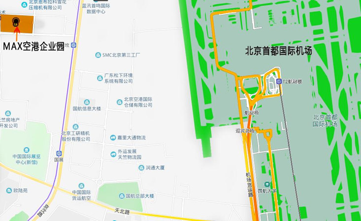 MAX空港企业园位于北京市顺义区空港工业区B区,总占地14.187万平方米,总建筑面积约35万平方米。一期5.2万平方米商务配套有四星级商务酒店、商业、研发中心;二、三期主体由69栋花园式花园式低密度企业独栋组成,均为4层至4.5层。独栋总面积控制在900-2000平方米之间,并可依据客户办公面积需求,提供MAX特有的多独栋"叠加"组合模式。同时是引领"北京临空经济圈"生态、健康式办公生活的前瞻型企业总部集群。