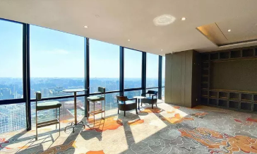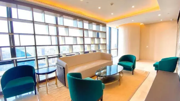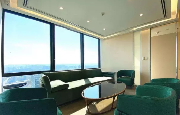 朝向西南北 正对电梯 精装修带家具 大气台前台、老板间视野好