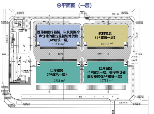 北京大兴国际机场综合保税库招租,公共库位于大兴国际机场综保区一期规划范围内;规划总建筑面积约11.6万平米,包含5个单体项目(4个保税物流仓库、1个办公楼),仓储和办公设施总面积约9.035万平米。