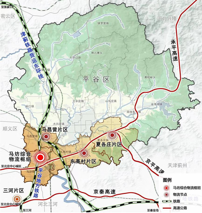 平谷区物流枢纽工程将以马坊镇、马昌营镇、东高村镇、夏各庄镇等多片区组成空间布局,实现各片区整体联动、产业错位发展;