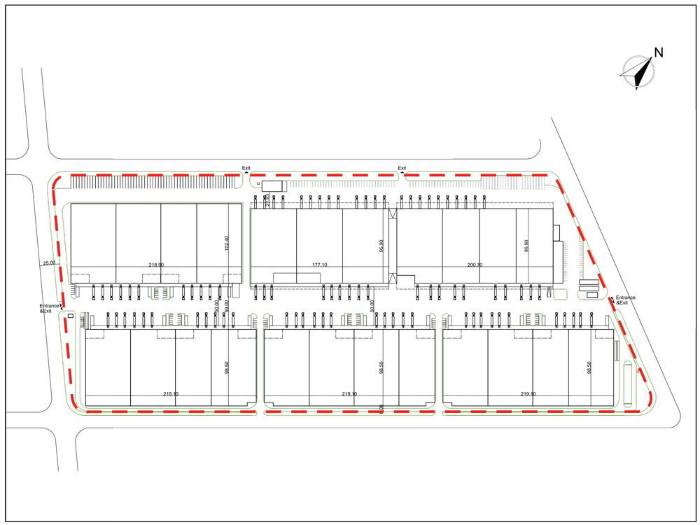- 周转场地 Truck Court: 约33.5米