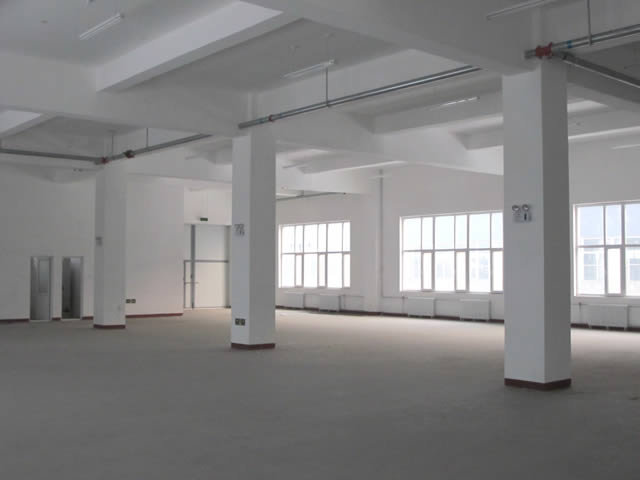 三层钢筋混凝土标准厂房,单层通透无隔间,美国克莱博工艺处理地面,专业承重2000KG货梯,车间两端均有楼梯及精装卫生间,集中供水供暖,配电室分路供电,出租形式多样,整租单层出租均可,价格面议。