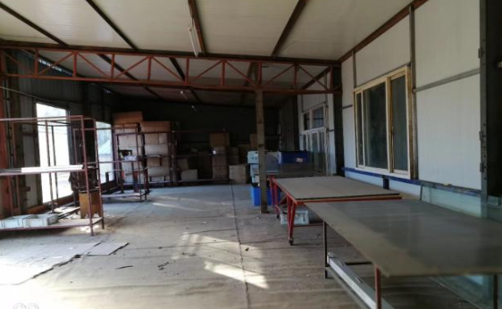 钢结构上下二层小仓库, 每层面积100平米有升降货梯可存储小型物品,院内闲置水泥硬化地面1200平米。