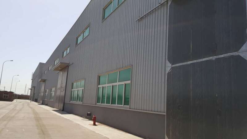 我公司位于天津市津南区辛庄镇双鑫工业园区发港南路33号,现有厂房一栋,2016年1月26日竣工,已验收完毕。厂房面积为12486.76平方米,长为153.4米,宽为81.4米,高度为10.91米。厂房结构为钢结构,手续齐全。地面为混凝土硬化地面,配有办公楼一层,价格面议。